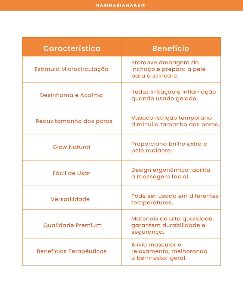 Estimula a Microcirculação e Oxigenação: Promove a drenagem do inchaço e prepara a pele para receber os produtos de skincare. Desinflama e Acalma a Pele Irritada: Quando usados gelados, os Ice Globes ajudam a desinflamar e acalmar a pele, reduzindo a irritação. Reduz o Tamanho dos Poros: A vasoconstrição causada pelo frio diminui temporariamente o tamanho dos poros, especialmente na região do nariz. Glow Natural: Proporciona um brilho extra ao rosto, deixando a pele iluminada e radiante.